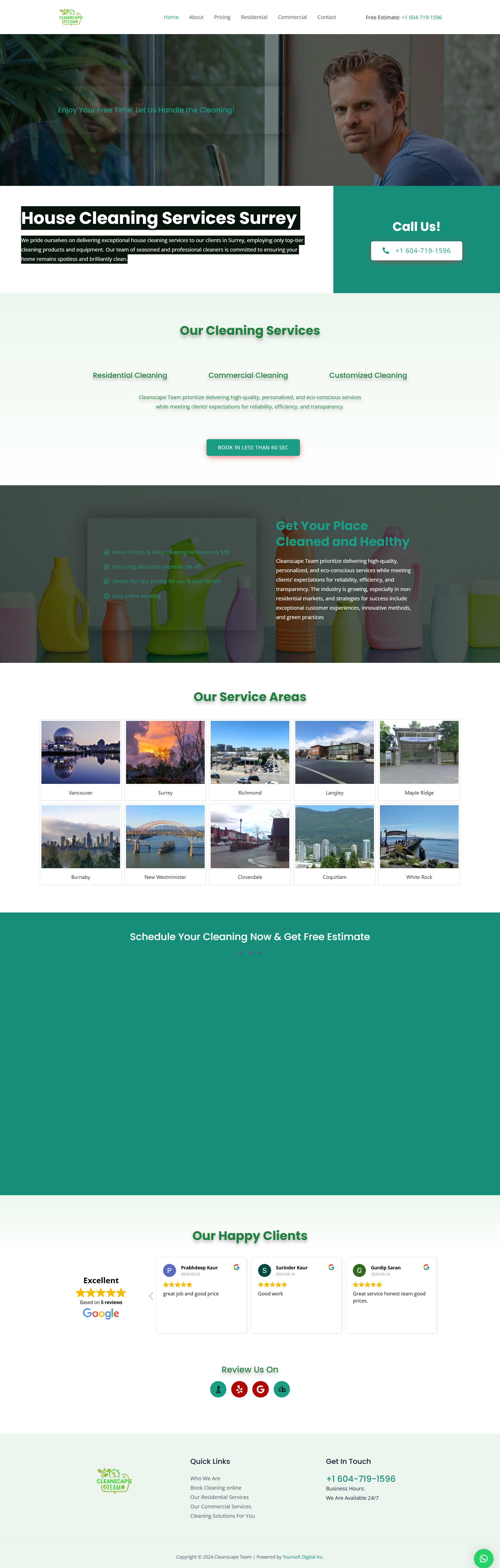 The success of Cleanscape Team is rooted in our dedication to customer contentment and the utilization of eco-friendly cleaning solutions and tools. Our commitment extends to our choice of hybrid and electric vehicles, underscoring our eco-conscious approach to reaching your home. We take pride in exclusively using non-toxic and biodegradable cleaning products, prioritizing safety for people, pets, and the environment. Moreover, our strong emphasis on customer service ensures that we cater to each customer’s individual needs and preferences. This commitment has fostered a loyal customer base, with many returning for recurring cleaning services.